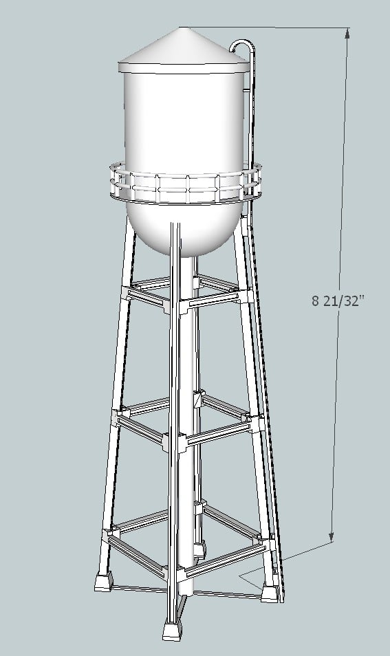 Art by "Udo" 3D Printed Fan Art - HO & O Scale Water Tower - "3d Printed to Order" Resin Cured and Washed.